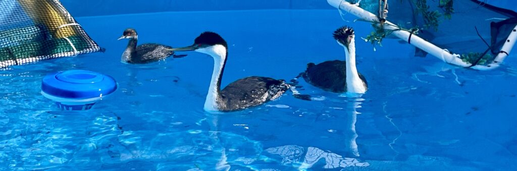 I mean, it’s not often you’re handed a pillowcase and a net and told to go out there and lasso a wild Western Grebe from a pool, burrito it in a pillowcase, and help keep it calm while it gets a check-up, medication, and feeding. The birds dodge our attempts to scoop them from the pool, but even once we manage to safely lasso a Grebe, we have to handle it firmly yet carefully and delicately. We also have to remember to keep our voices down so as not to startle them. Making sure the pillowcase stays secure, and remaining calm when, invariably, a bird wiggles its head free and starts squawking. Understanding the general anatomy of the various pelagic birds in care so you know how best to handle them (pelicans, grebes, and cormorants, for example, all require different handling techniques!). And on and on!