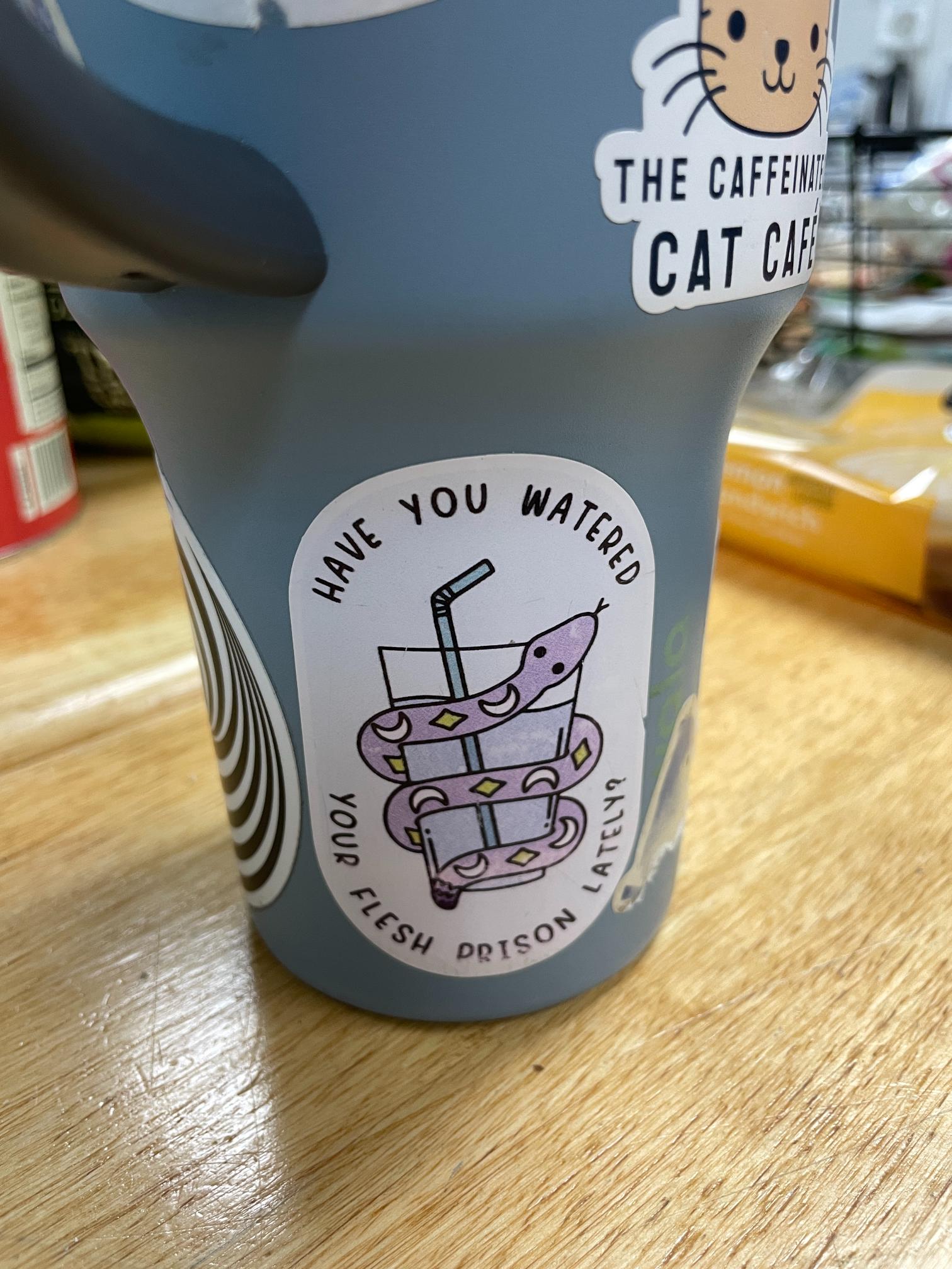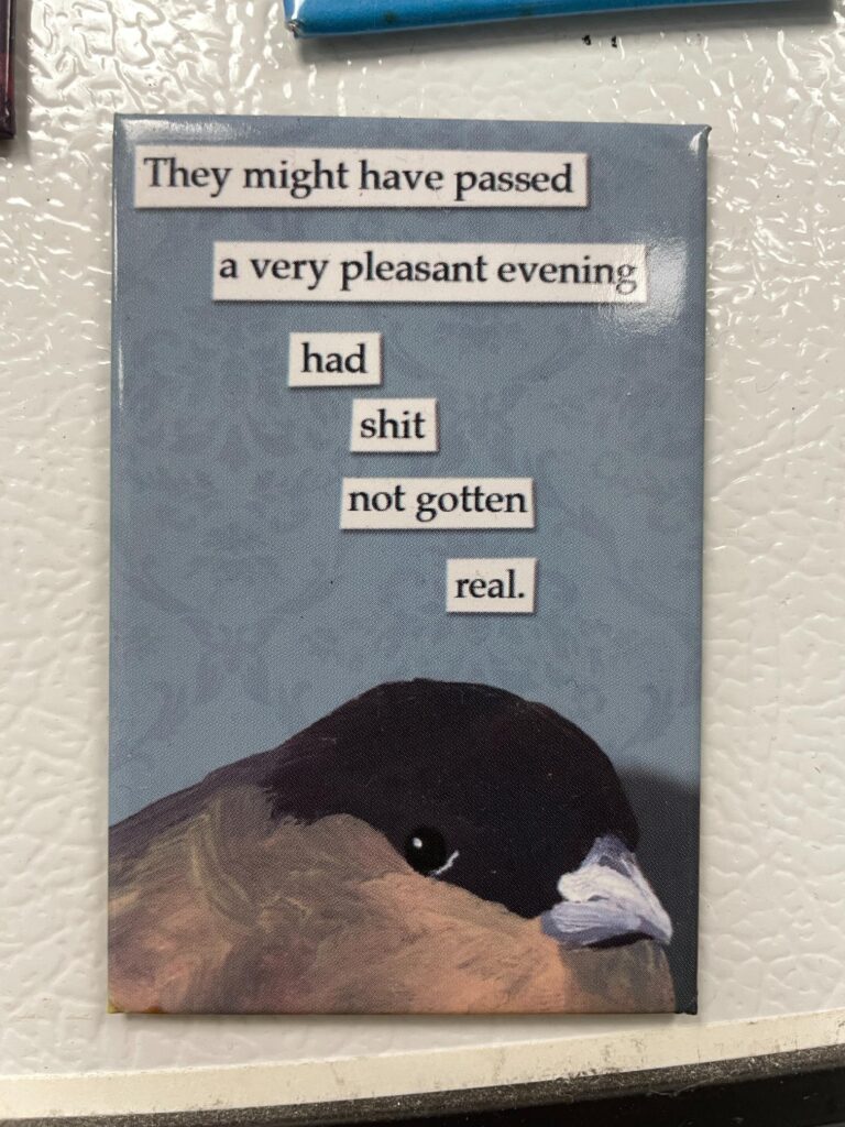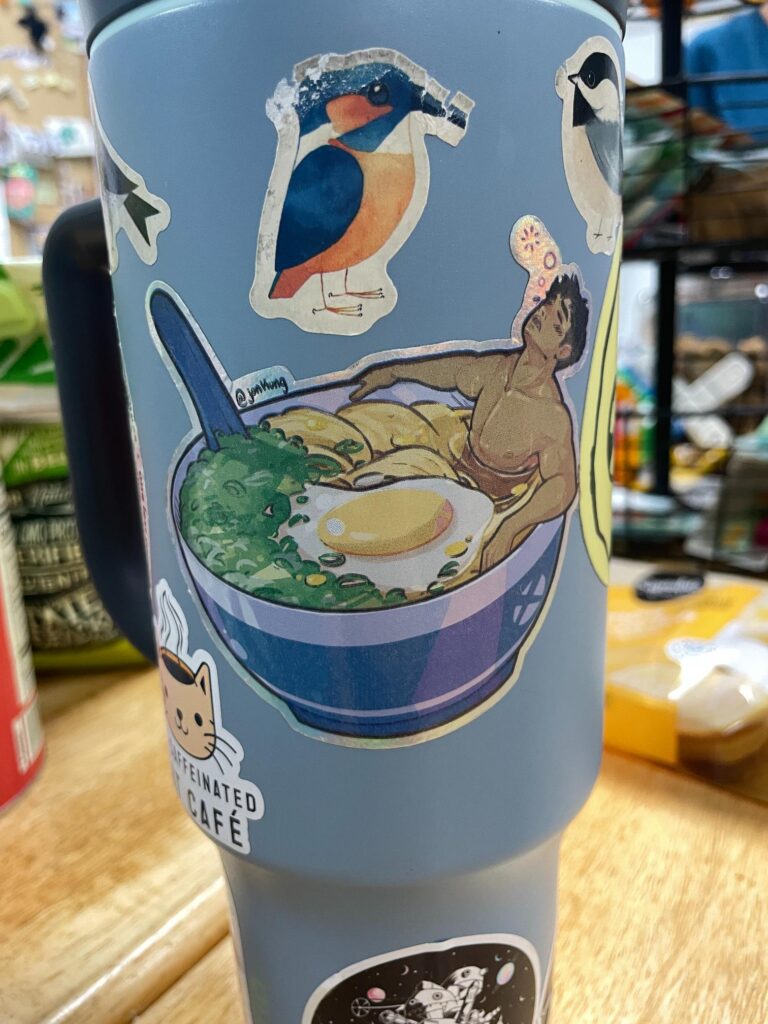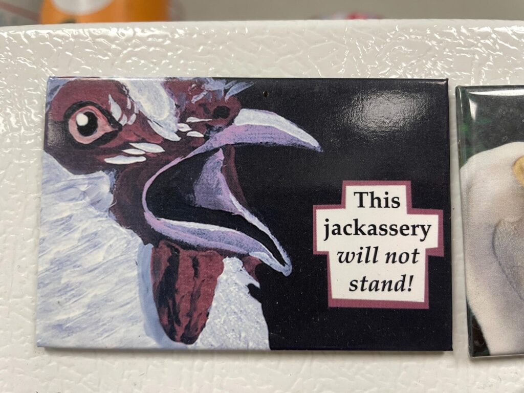 It’s honestly mostly plants. Some views. Birds, obvi. A small montage of stickered water bottles left in the break room from volunteers and staff at IBR, along with a few cheeky magnets on the break room fridge.